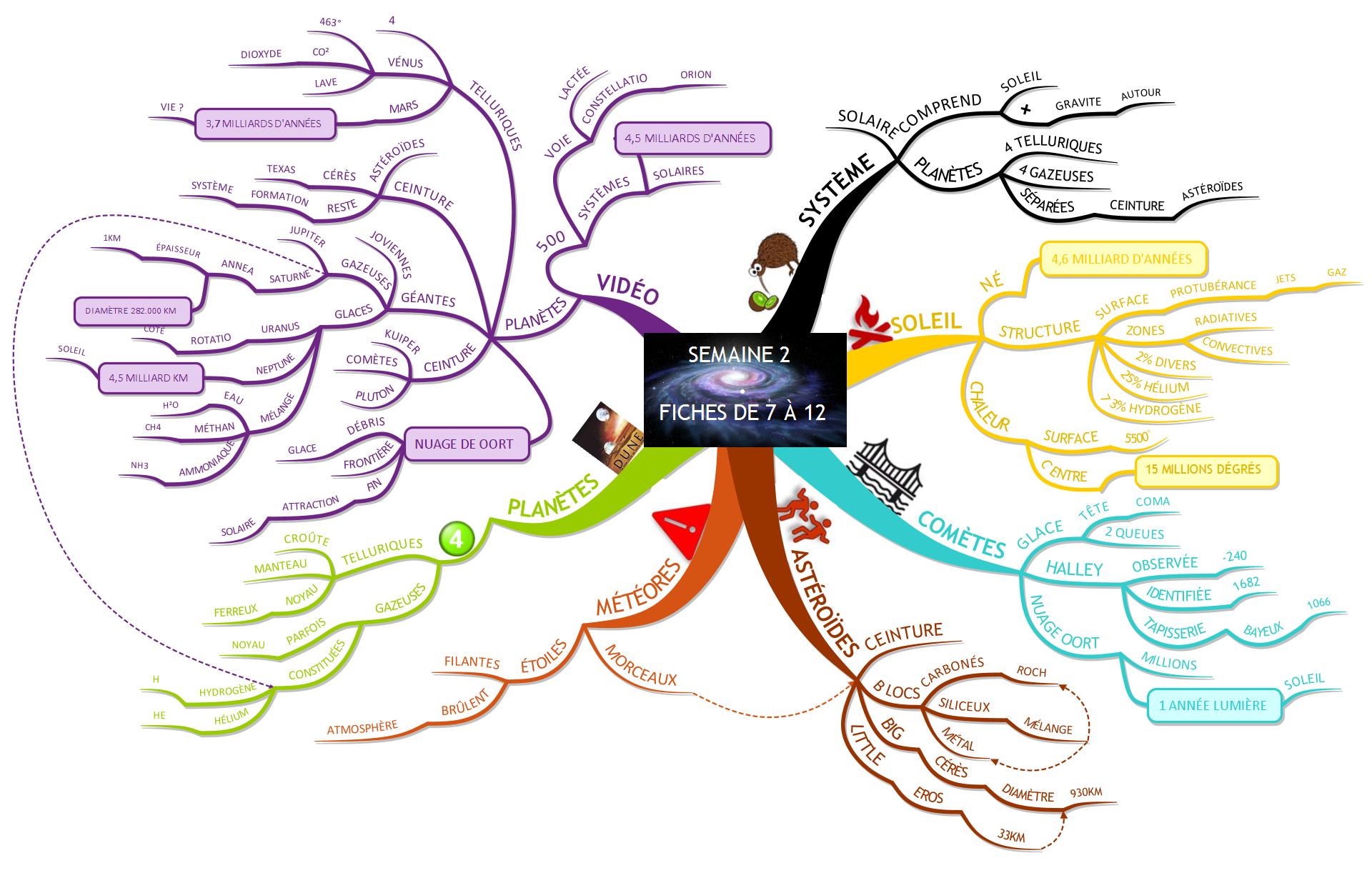 Voici ma Mind Map des fiches 7 à 12 sur le thème de l'ESPACE, ainsi que la vidéo sur le système solaire que Vincent m'a proposée.