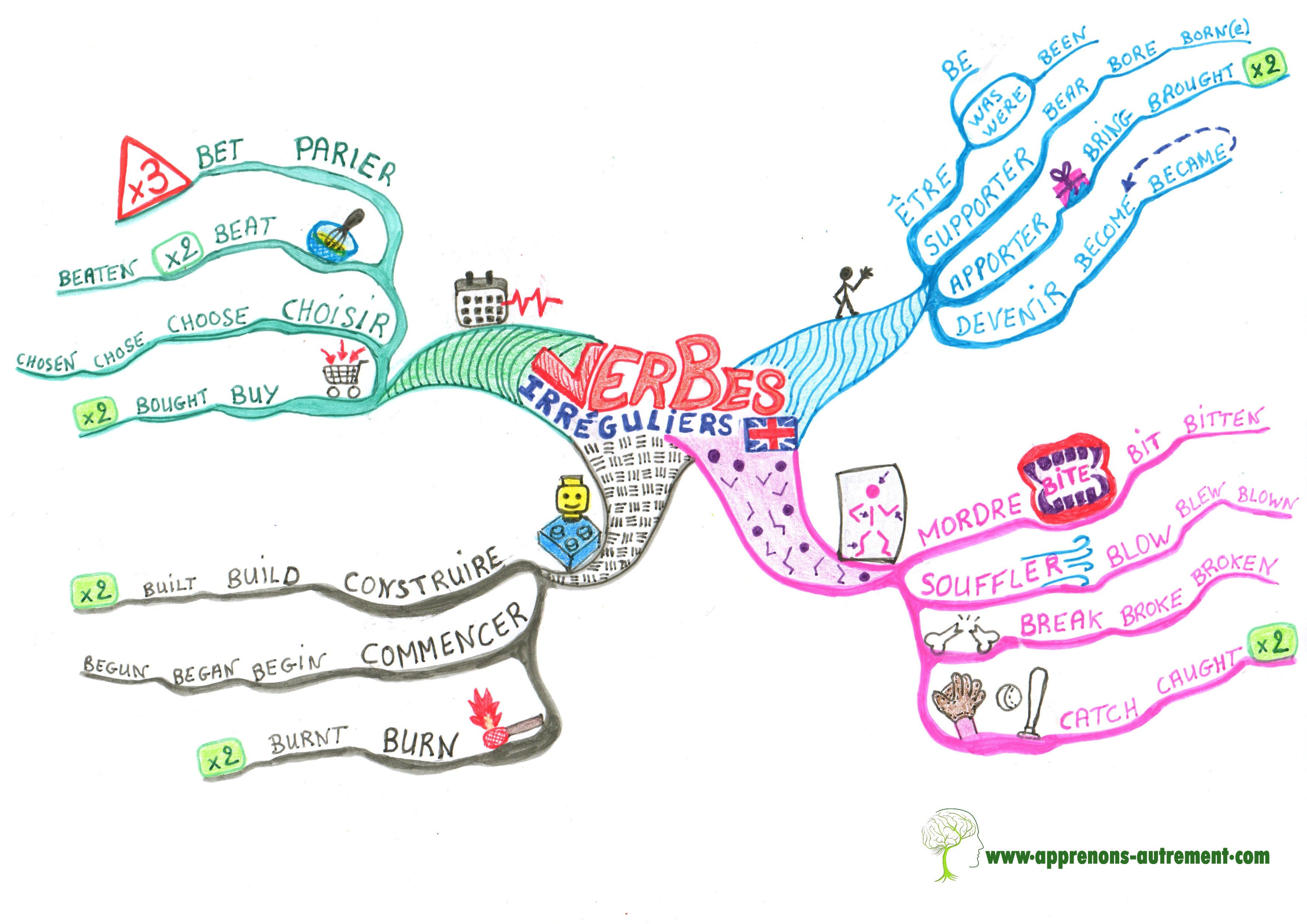 Pour réponse, j'ai eu le droit à un : "Mais maman, c'est impossible de faire une jolie Mind Map avec ces verbes !"